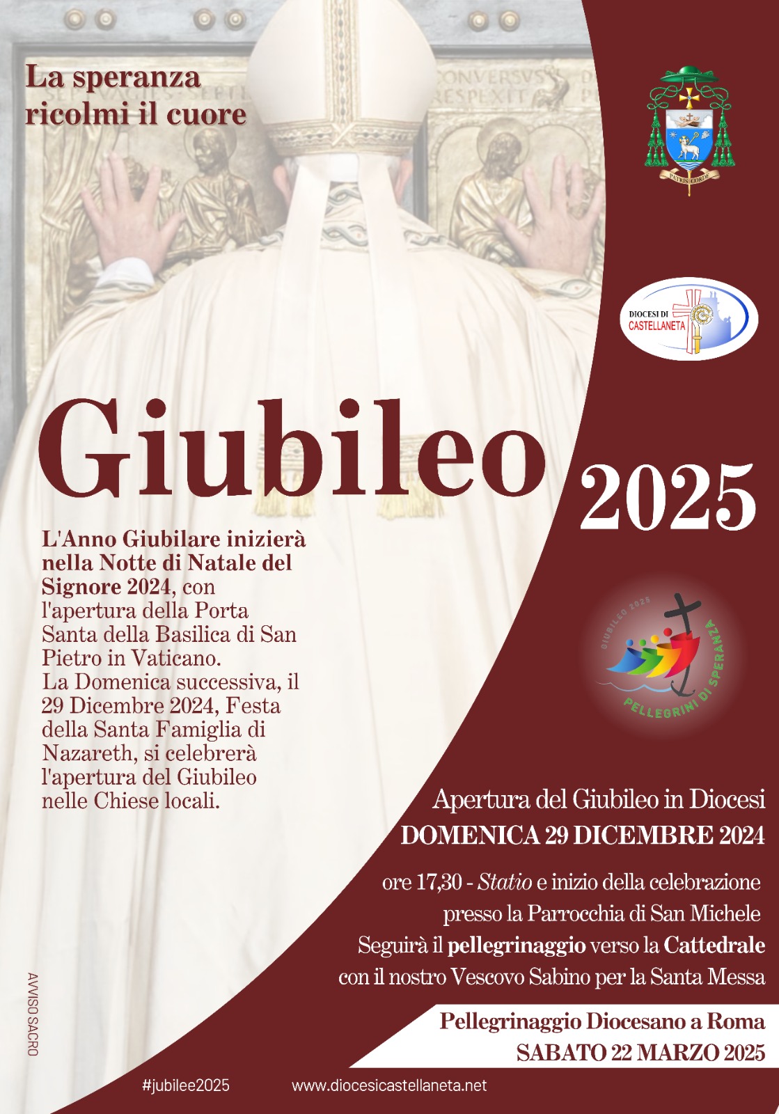 Per maggiori informazioni sul Giubileo nella Diocesi di Castellaneta, vi invitiamo a visitare il sito web diocesano: https://www.diocesicastellaneta.net/giubileo-2025/