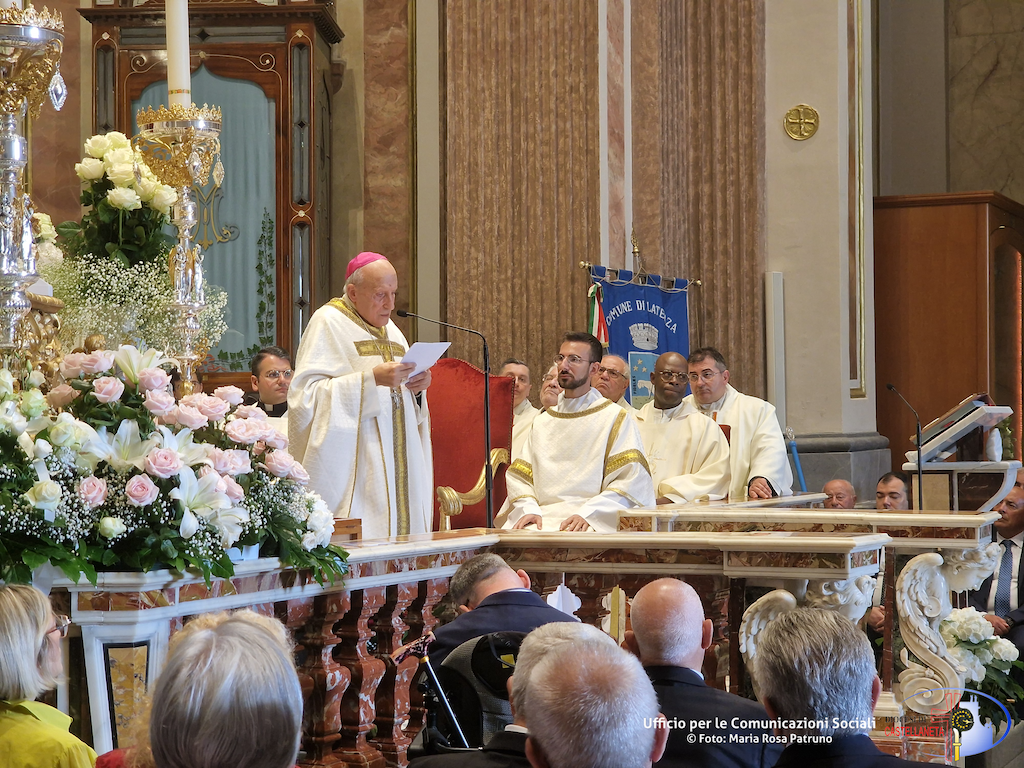 Lunedì 20 Maggio la Città di Laterza ha festeggiato la B.V. Maria SS. Mater Domini, Patrona della comunità. Dopo la Santa Messa celebrata da Mons. Mario Paciello, Vescovo emerito di Altamura, presso il Santuario omonimo, il Sindaco ha consegnato le chiavi della città e si è svolta la processione con il venerato simulacro.