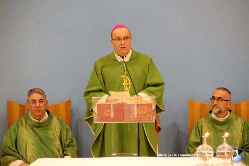 Desidero rivolgere un pensiero particolare e grato al Ministro provinciale dei Frati Minori del Salento, Fr. Massimo Tunno, e ai confratelli della Fraternità “San Francesco” di Castellaneta: Fr. Rocco Emanuele Cagnazzo, Fr. Cosimo Damiano Nigro e Fr. Luigi Orlando. Insieme a loro, questa sera accompagniamo Fr. Alfonso Cosi che inizia il suo ministero pastorale, sostenuto dalla benedizione del Signore e dall’affetto della fraternità. Lo facciamo come Popolo di Dio in cammino, consapevoli che «noi tutti siamo stati battezzati mediante un solo Spirito in un solo corpo» (1Cor 12,13), uniti nella diversità dei carismi e dei ministeri, come un coro che canta la varietà delle voci nella stessa armonia. (Cfr. Sinodo Universale 2023,1).